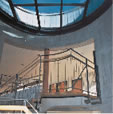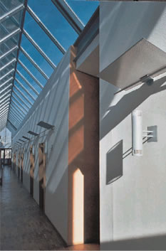 sind amorphe Halbleiter-schichten aufgedampft. Die semitransparente Ausfüh-rung bietet überdies Sonnenschutz für den darunter liegenden Gang.